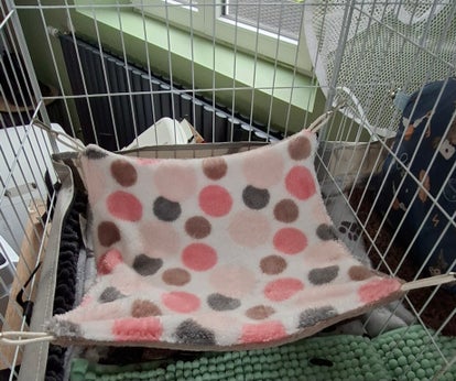 Optimisez l'espace de vie de votre petit compagnon avec ce hamac simple, conçu pour offrir à la fois un poste d'observation en hauteur et une cachette sécurisante.